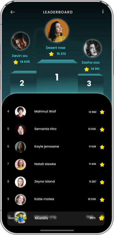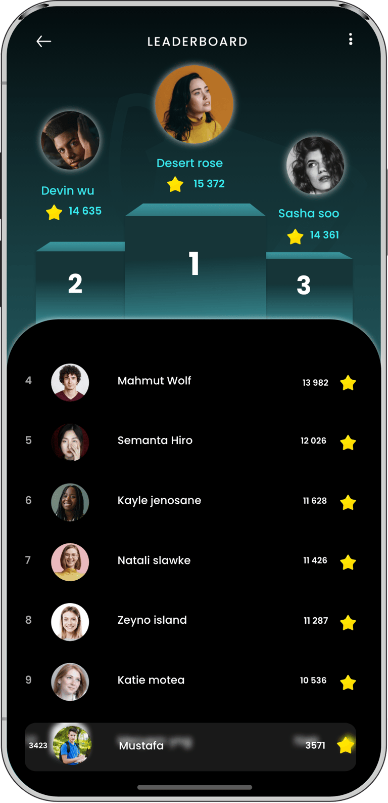 Quizleri çöz, yıldızları topla, rozetleri kap ve liderlik tablosunda yerini al.